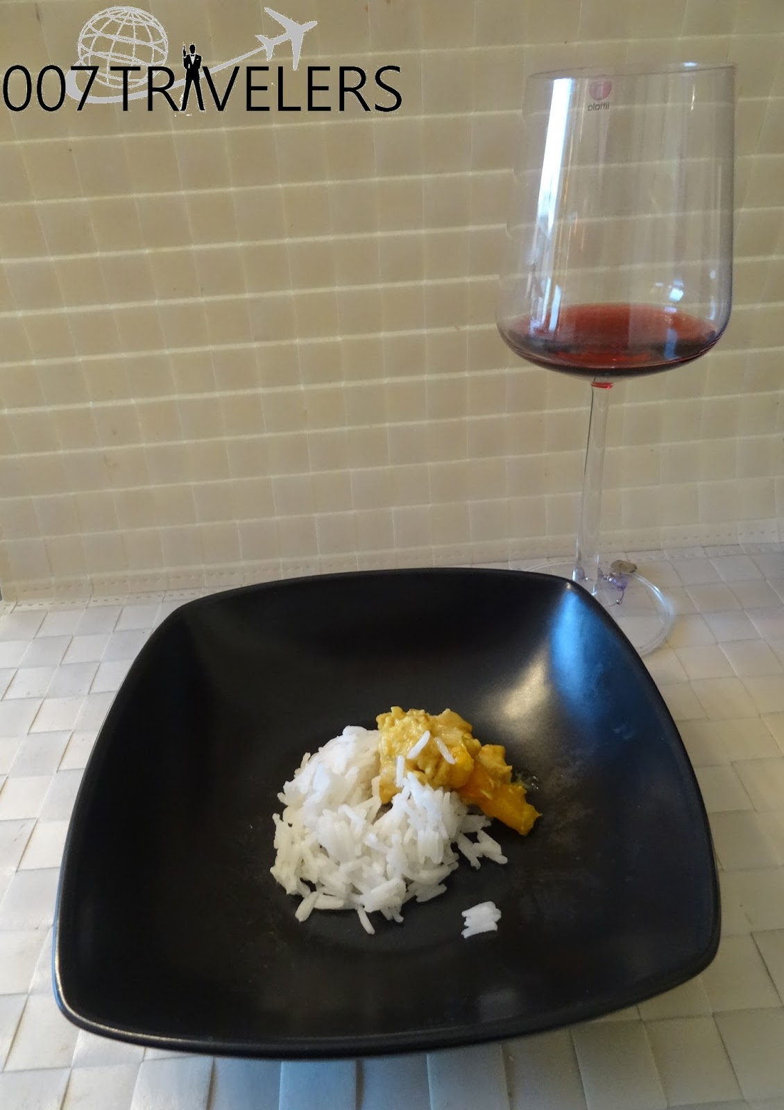 007 Food: Curry chicken in Indian style with a mouthful of red wine