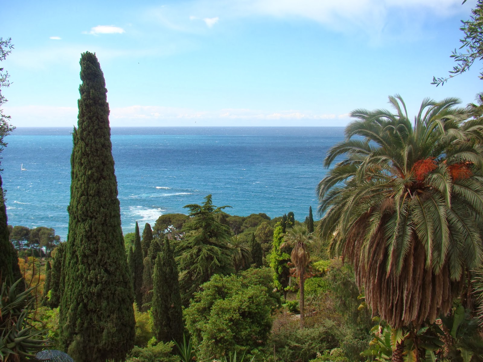 Siellä huoneemme ei tietenkään aamulla ollut vielä valmis, joten jätimme matkalaukut säilytykseen, ja lähdimme ylös vuoristoon Hanbury Botanic Gardensiin (Sir Thomas Hanbury Gardens, La Mortola). Liput á 9 eur. Upea kasvitieteellinen puutarha, joka alkoi ylhäältä vuoristosta, kävellen laskeuduttiin ympyrää kiertäen alemmaksi ja alemmaksi. Toista reittiä takaisinpäin noustiin kävellen takaisin ylöspäin, päivän kuntoiluosiosta kävi tämäkin