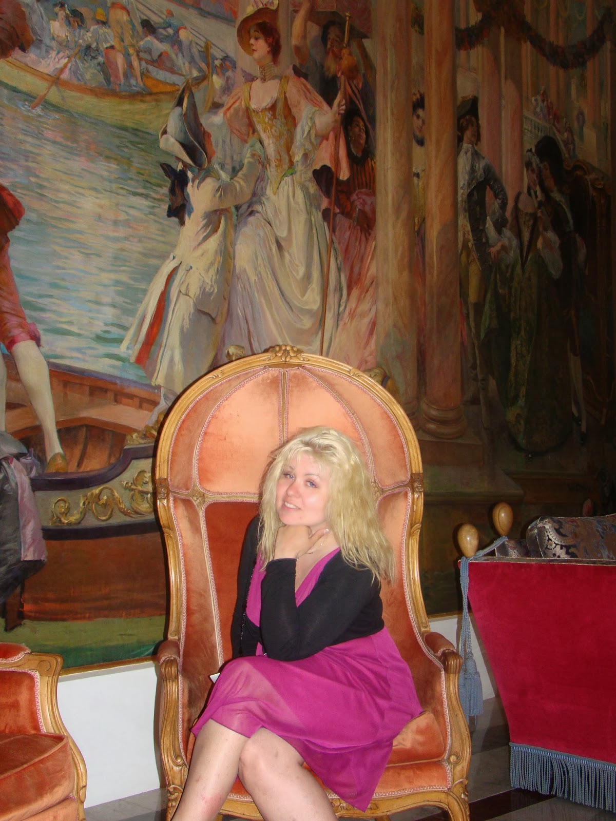 Sisäänkirjauduimme hotelliimme tämän jälkeen. Olimme jo laukkujen jättämisen yhteydessä kierrelleet hotellin aulassa. Aivan uskomattoman upea kierros, ympyrän muotoinen, täynnä nähtävää. Jopa hissimme oli upea, punaista samettia/blyysiä. Huoneemme oli todella hieno, pastellisävyinen saniteettitiloja myöten.