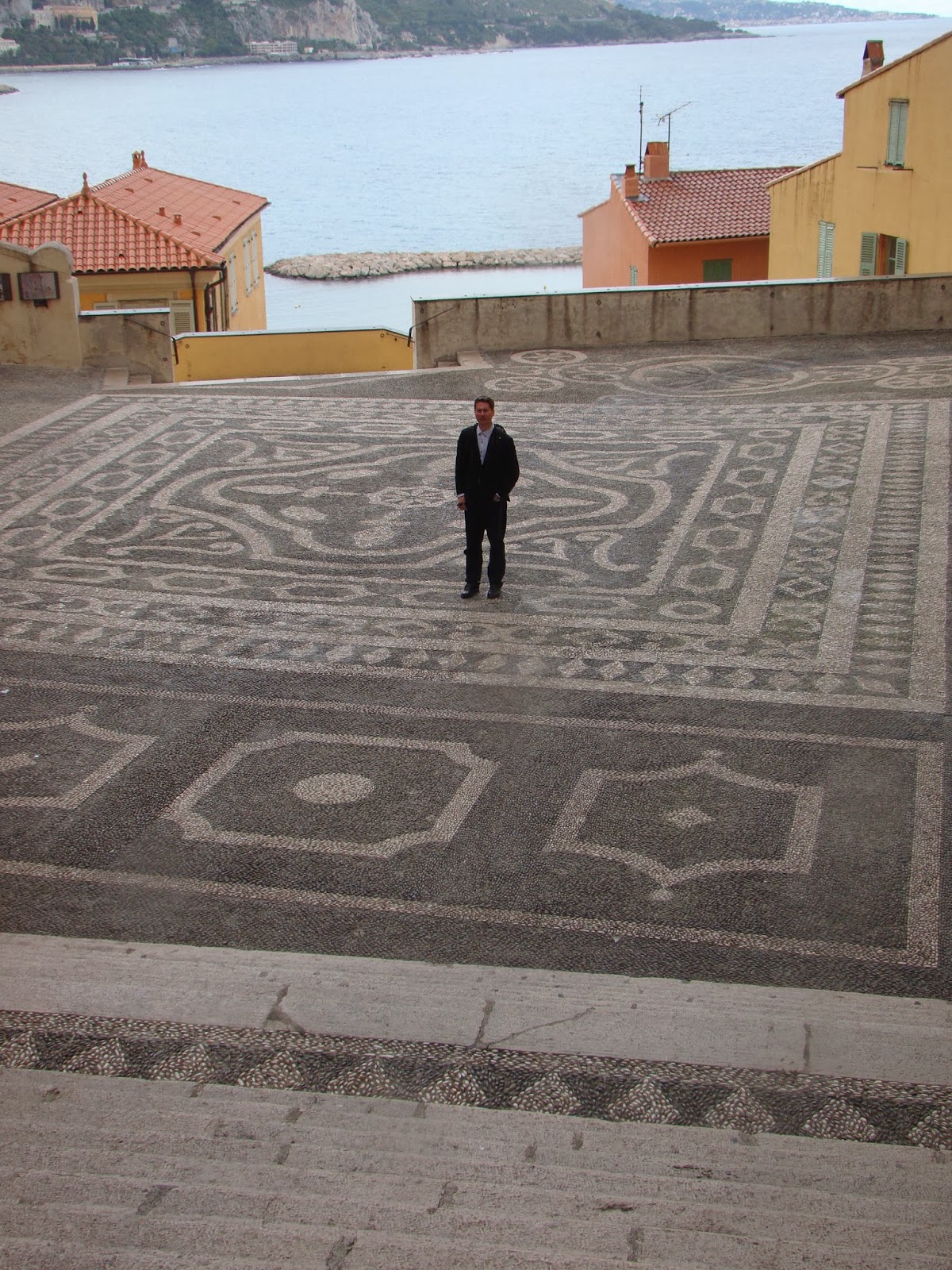 Mentonissa ensimmäinen Bond-kohteemme oli Eglise St. Michel –kirkko, ja sen aukio, josta 007 ajaa portaita alas moottoripyörällä ajaessaan takaa Fatima Blushia.