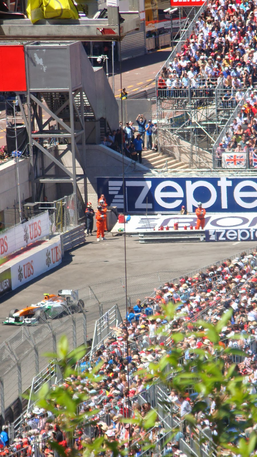 Ilma oli helteinen, kilpailu venyi keskeytyksen takia punaisen lipun liehuttua. Kimi Räikkönen ei voittanut, mutta saatiin edes osittain kotivoitto, kun Nico Rosberg kaasutteli ykköseksi! Jonotus alueelta pois tuntui kestävän ikuisuuden. Lopultakin pääsimme täpötäyteen junaan, ja menimme takaisin Ventimigliaan. Tämä olikin hyvä ratkaisu tässä kohtaa ottaa majoitus Iltalian puolelta, sillä kuitenkin valtaosa kisaturisteista oli majoittunut Nizzan puolelle, ja se näkyi ruuhkissa sinne suuntaan.
