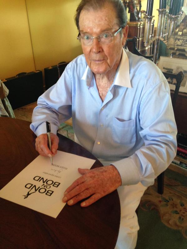 June 7, 2015“It’s a tough life as an author. Signing Bond on Bond new softback front pages to be inserted into some copies.”