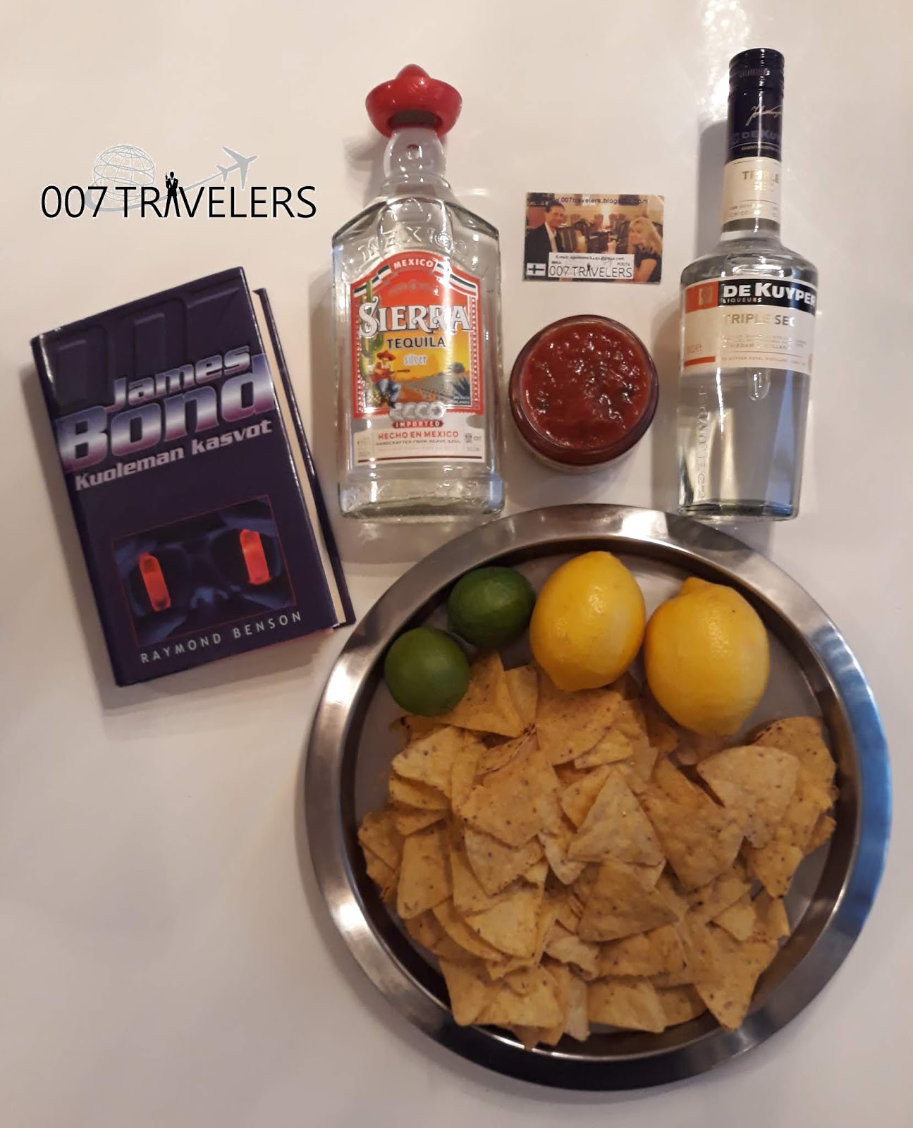 “Leiter had some pull with the manager, so they didn’t have to wait the usual forty-five minutes before being shown to a table at a booth. A waiter placed a basket of hand-fried tortilla chips with fresh homemade salsa in front of them. The utensils were inside a wax-paper packet which read, “The silverware has been SANITIZED for your protection!” Leiter ordered two rounds of frozen margaritas, much to Bond’s dismay. Made from silver tequila, squeezed lime juice, and triple sec, margaritas were a staple in Texas, and the frozen variety made a slushy beverage that Bond liked to call “a musical comedy drink.” It was served in a salted wineglass with a lime wedge. When he tasted it, however, he was surprised by its satisfying flavor. It certainly went well with the hot salsa. Leiter and Bond were soon laughing and reminiscing about old times.