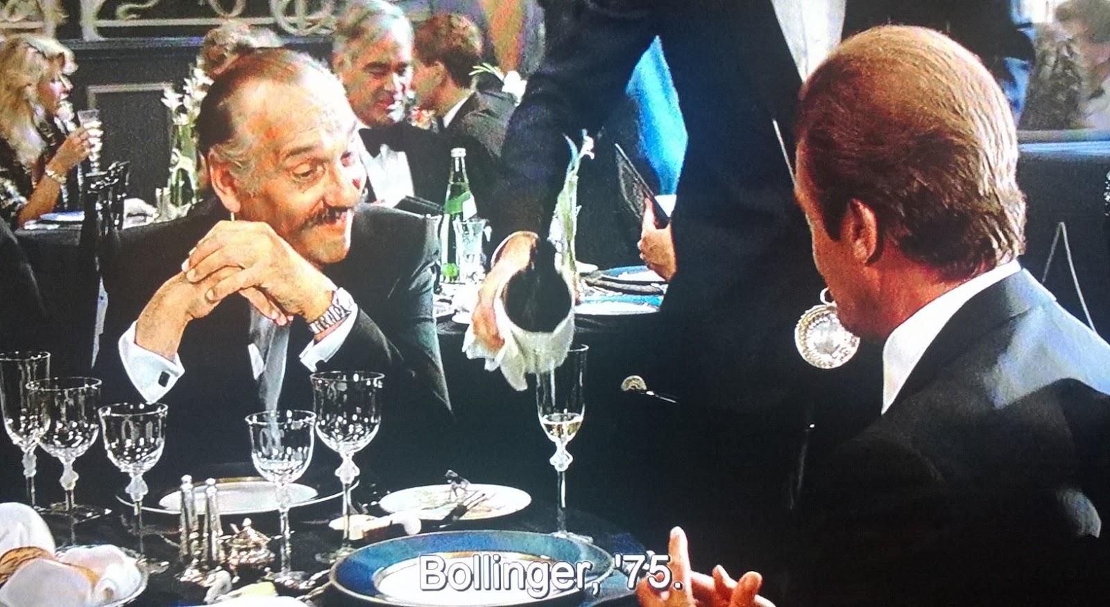 | 007 (Roger Moore) drinks Bollinger ’75 in “A View to a Kill” (1985) Photo © EON, United Artists, Danjaq LLC |