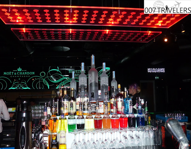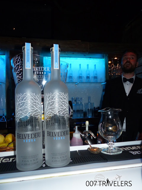 Pidimme baareista ja siitä kuinka Bond-sponsori Belvedere vodka oli hyvin esillä.
