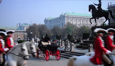 What happens here in the movie: Bond and Kara Milovy (Maryam d’Abo) take horse carriages to go to their hotel in Vienna.