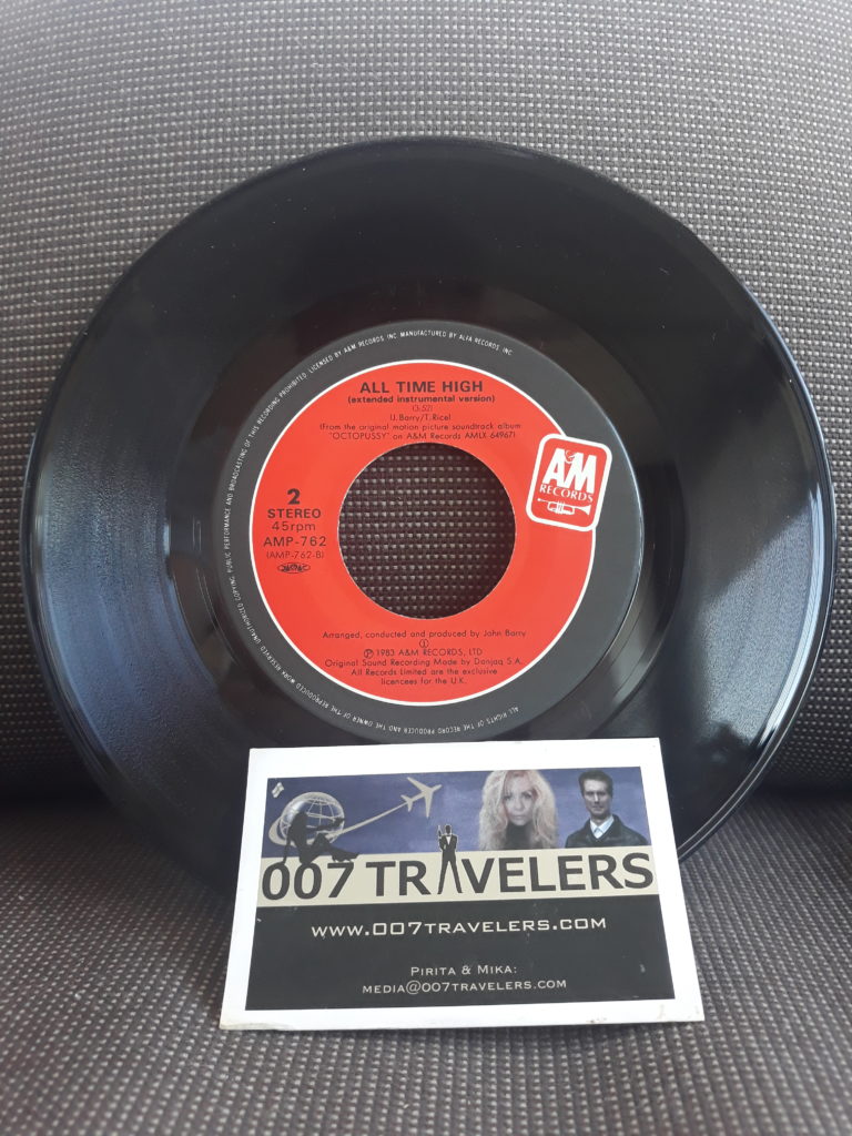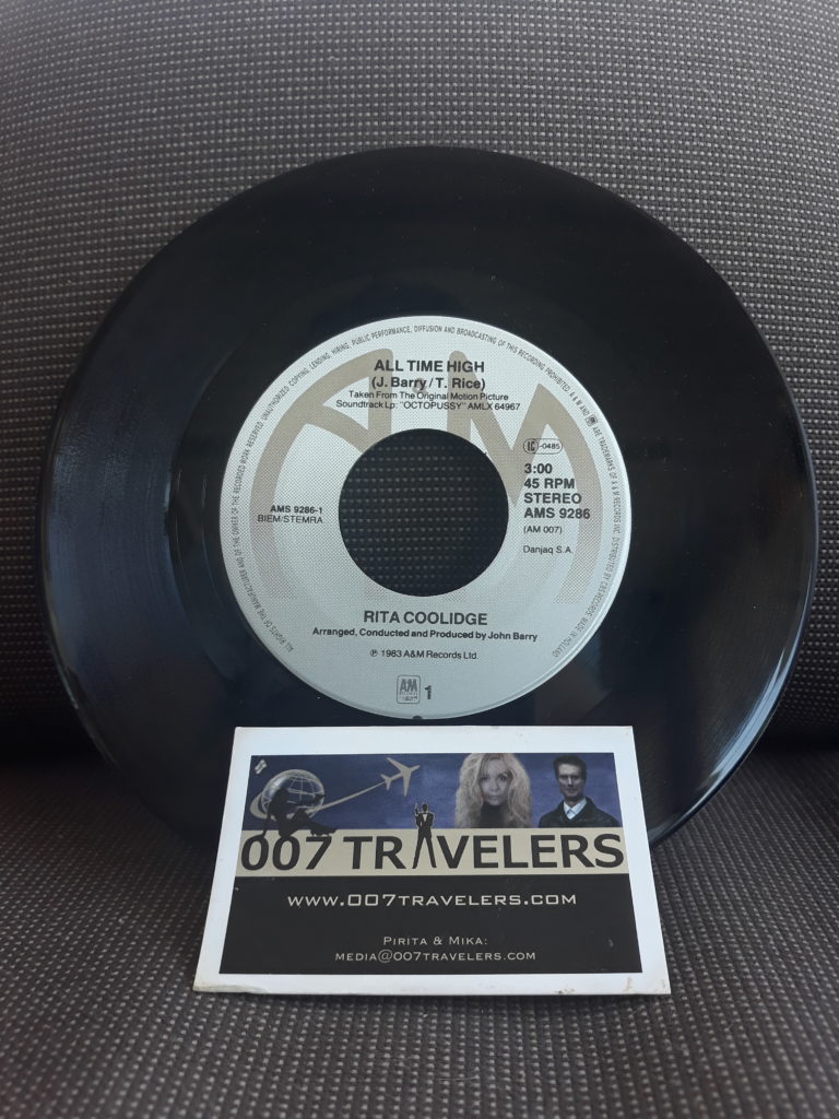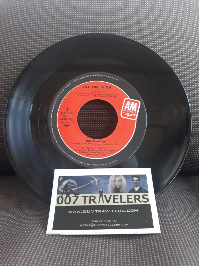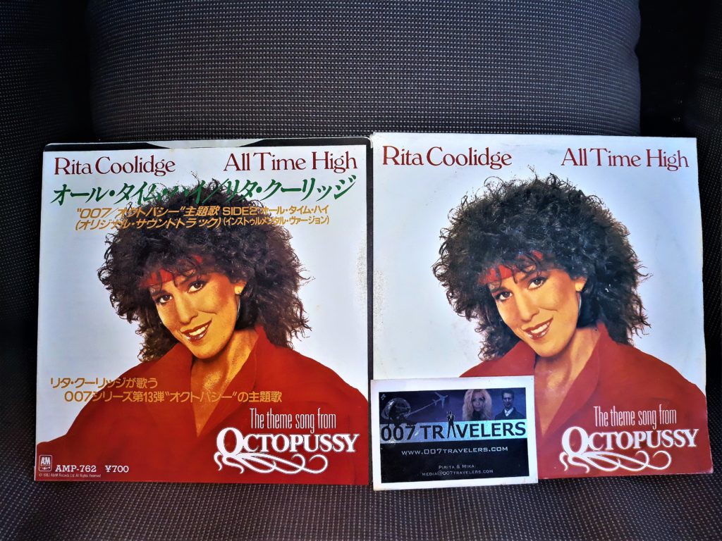 007 Item: Rita Coolidge All Time High single Japanese edition July 15, 2020 0 By 007 Travelers 007 Item: Rita Coolidge All Time High single Japanese editionThe Theme Song from OctopussySee more 007 ITEMS hereSee more 007 SOUNDTRACKS here007 Travelers review of “The Bluffer’s Guide to Bond”007 Item: Casino Royale Deluxe collectors edition DVD – Japanese edition007 Event: Cinefest Miskolc / George Lazenby to receive the Lifetime Achievement Award (13-21 September 2019)Construction crew is building “SPECTRE” set in Mexico City, Mexico007 Item: Sean Connery clock007 Director: Val GuestIn Memoriam: Charles “Jerry” Juroe007 Drink: Basil Hayden’s BourbonJames Bond’s watch could sell for £90,000 at auction on 30 October 2018Bond girl: Magda Uusi James Bond – podcast Tanya Roberts & Tom Jones
