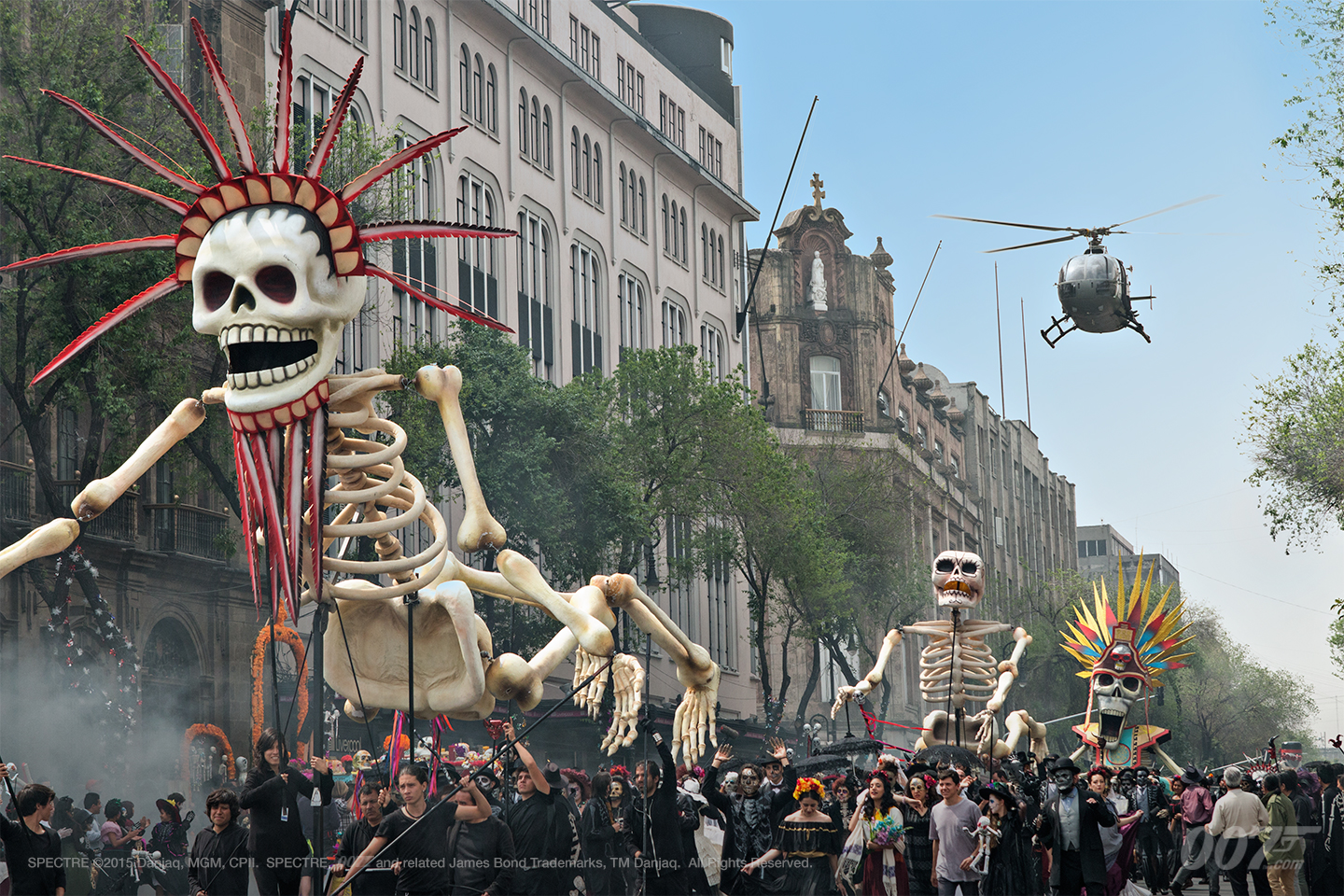 The 24th Bond film opens in Mexico City amid a wild Day of the Dead