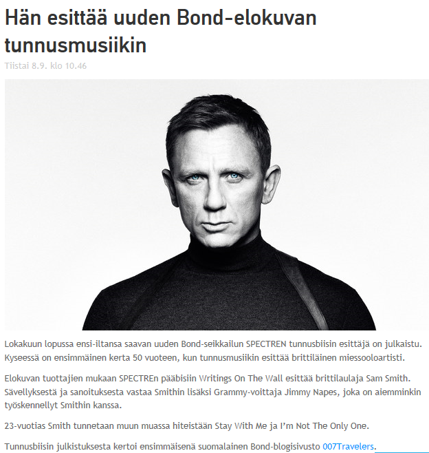 Uusisuomi.fi (This artist performs new Bond theme song)