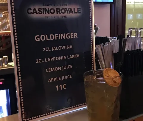 Drink: “Goldfinger” (not appeared on any Bond film or book) Includes: 2cl Jaloviina, 2 cl Lapponia Lakka, lemon juice, apple…